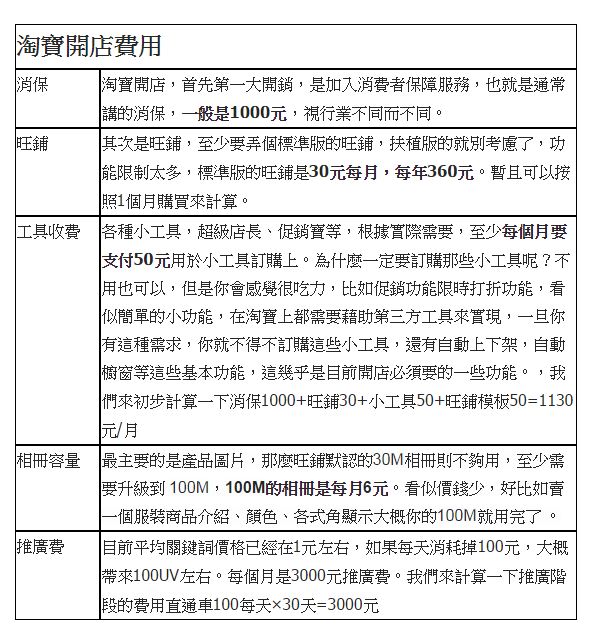 其他網路開店平台費用如下: