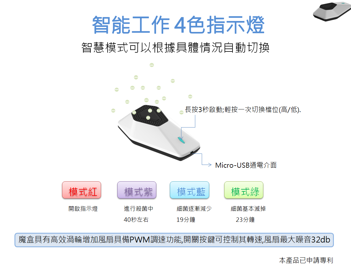 UVC-LED燈+負離子+新型抗病毒奈米複合材料濾網滅菌殺毒,經認證殺菌率在99.99%;甲醛、TVOC去除率99.9%