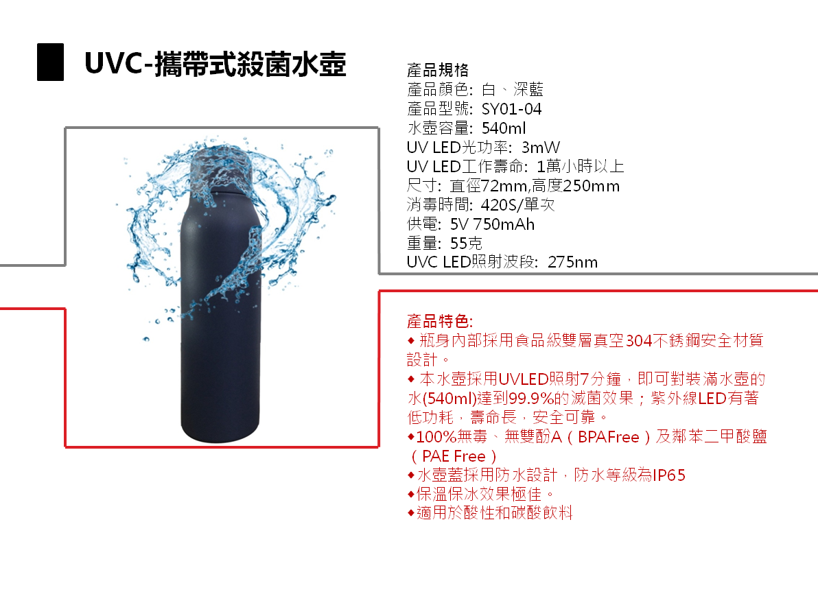 本水壺採用UVLED照射7分鐘,即可對裝滿水壺的